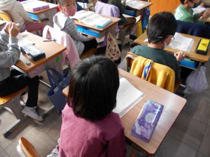 初めての当番の時,どんな気持ちだったのか,発表しています。