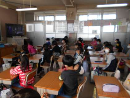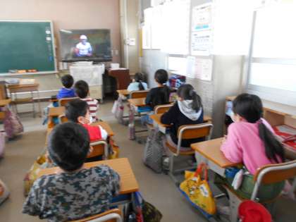 ボール投げのポイントを,ビデオ教材で学習中です。