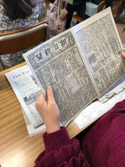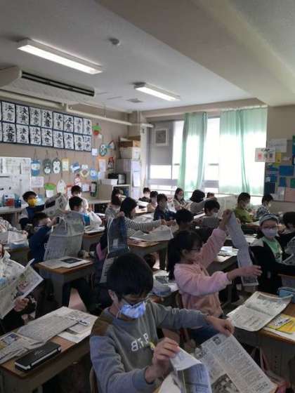 朝日プリンテックの方が出前授業に来てくださいました。新聞がどのように印刷されるのか学びました。また新聞の強度を試したり、明治時代に作られた新聞を見て、今の新聞との違いを探したりしました。今日の学習をぜひ、お家の人にも教えてあげてください。