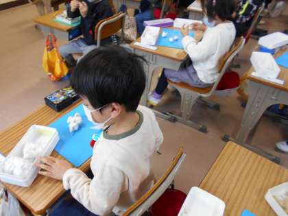 粘土で作品作りです。 楽しそうに,そして真剣に,取り組んでいます。
