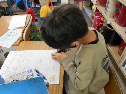 テスト中です。 三角定規やコンパスを使って,解答を考えています。