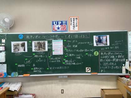 6年 社会 公開日 2021/02/04 更新日 2021/02/04 6年生 戦争が終わってからの20年間について,当時の写真や年表を見ながら考えました。 戦後の外国との関係や,どのように日本の町が復興していったかなどについて,クラスみんなで考えました。