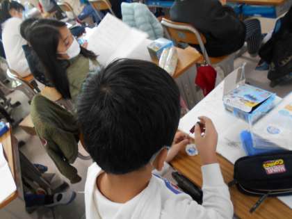 磁石を使った実験をしています。
