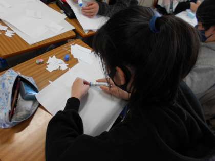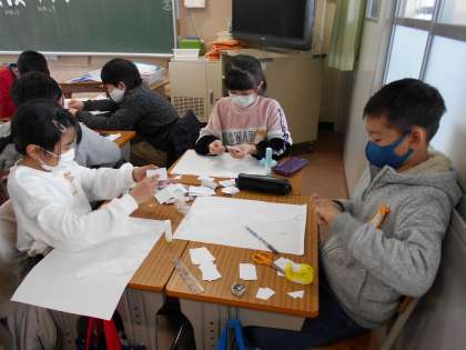三角柱の展開図は何種類かを,実際に作りながら考えています。