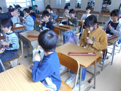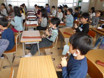 「ソ」の指使いと音を,一人ずつ確認していきます。