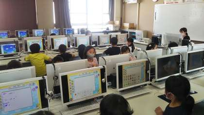 パソコンで絵を描いたりしました。みんな集中して楽しそうです。マウスも上手に使いこなしています!