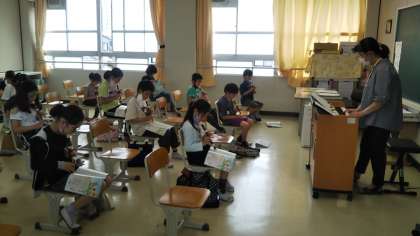 二教室に別れてリコーダーの練習です。さすが4年生、上達が早くなってきました!