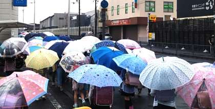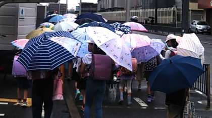 大雨洪水警報の中でしたが、安全に登校できました。保護者の皆さま、地域の皆さま、ご協力ありがとうございました。