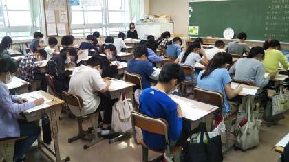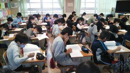 国語の時間です。真剣に取り組んでいます。し〜んと静まり返っています。