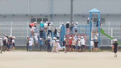 ちょうどいい具合いに日が陰り、たくさんの子どもたちが出てきました。みんな元気です。