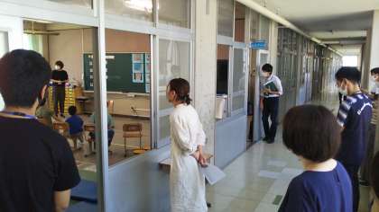 あおぞら学級で授業を公開し、担任をはじめ多くの先生に自立活動の授業の様子を参観してもらいました。ミニサーキット運動をするにあたって、自分でめあてを決めて、クラスのみんなに伝え合いました。思ったとおりにできたかな?
