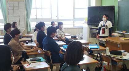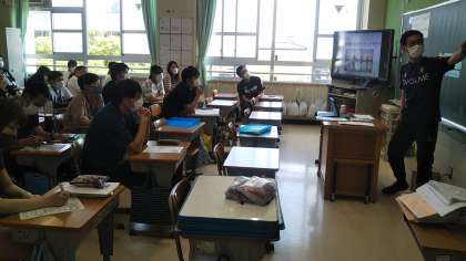 ●教員自主研修 (第二回) 公開日 2021/06/09 更新日 2021/06/09 トピックス 放課後に教員の研修を行いました。今回は伊藤先生と横江先生が講師となり、算数教育と仲間づくりについて意見交流をし、知見を深めました。自主研修でしたが、前回に続きほぼ全員参加です。教員も学び続け日々成長することを心がけています。
