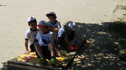 暑くても元気に遊んでいます。木陰で寛ぐ姿も…。