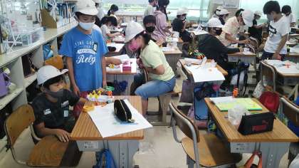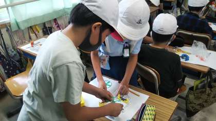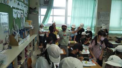 昨日の公開授業の続編となる授業です。プロペラを天井まで飛ばすにはどうしたらいいか?ペアで考えて工夫してチャレンジしました。一番に天井に到達してガッツポーズです!
