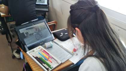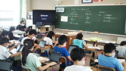 パ調べ学習、保存した自分の取組の振り返り、学習状況の確認など、GIGA端末を様々な場面で活用しています。