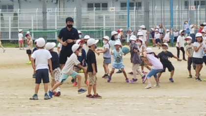 この日は曇り空で風が涼しく、久しぶりにたくさんの子どもたちが運動場に出てきて体を動かして遊びました。いい光景でした。