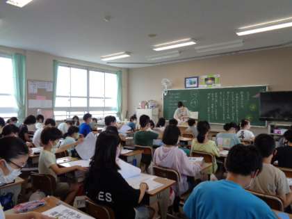 終業式が終わり,それぞれ教室で夏休みの配布物の確認をしていました。小学校最後の夏休み,有意義に過ごしてほしいと思います。