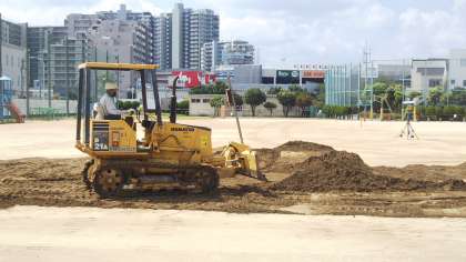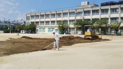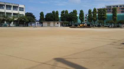 ●グランド改修工事進行中! 公開日 2021/07/29 更新日 2021/07/29 トピックス 長年の使用で表面がカチコチになっていた運動場を改修しています。 硬く古い土を取り除き、新しい土を入れています。 2学期の体育や休み時間を楽しみにしててください!
