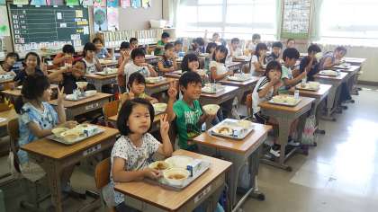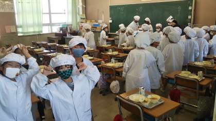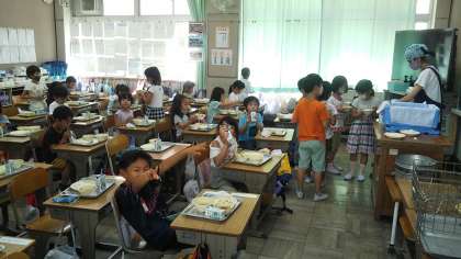 2学期最初の給食は、ドライカレーと野菜スープです。おいしくいただいてます!