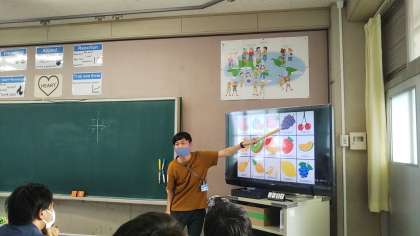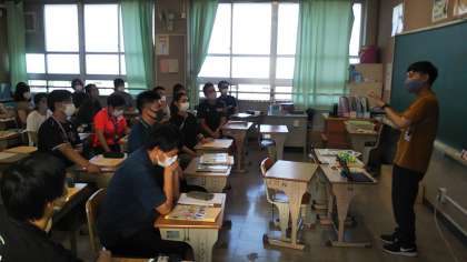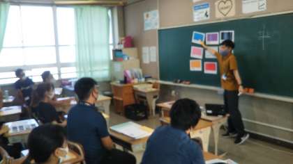 放課後に、森岡先生が講師となり、外国語指導の研修を実施しました。理論の部分と実践に役立つアイデアをバランスよく取り入れ、有意義な研修となりました。