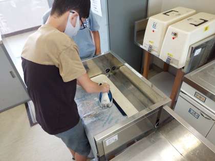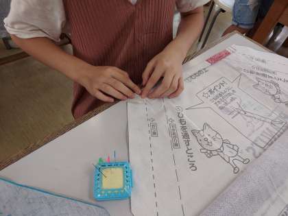 エプロン作りが始まりました。
