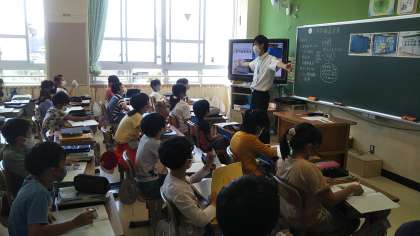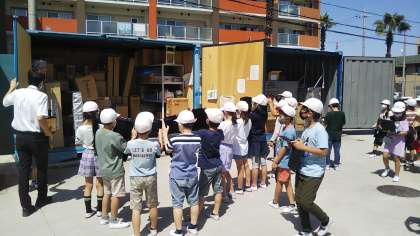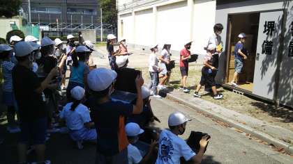 4年担当の樫葉先生が社会の研究授業をしました。テーマは「自然災害から人々を守る。」西門横にある災害備蓄倉庫の中に何がどのような理由で置かれているかを考えて、最後に実際に倉庫を開けて中身を確認しました。予想通りの物があったかな〜?