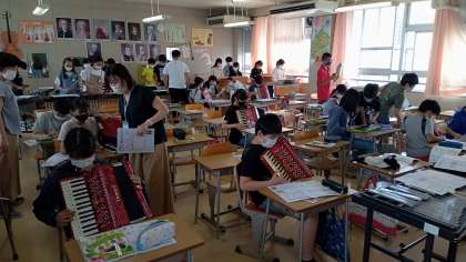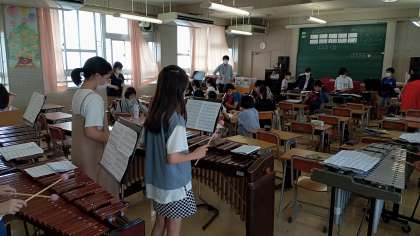 ●6年生音楽 校内公開授業 公開日 2021/09/30 更新日 2021/09/30 トピックス 4限目、渡邊先生が6年4組で授業を公開しました。和音に含まれる音を使って旋律をつくり、それを友だちと合わせて演奏して、和音の成り立ちを理解しました。合奏表現にまた一つ幅ができそうです。