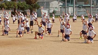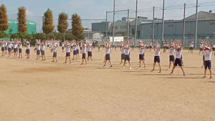 団演練習の様子です。隊形移動が凝っていて難しそうですが、子どもたちはやりこなしています!