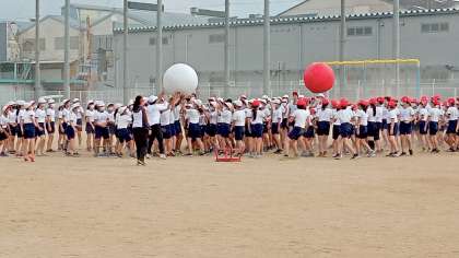 今日は赤白の大玉リレーの練習をしました。みんな楽しそうで盛り上がりました!