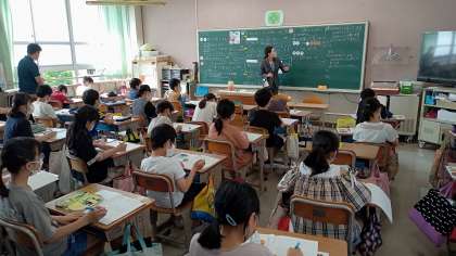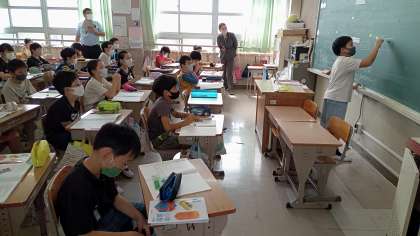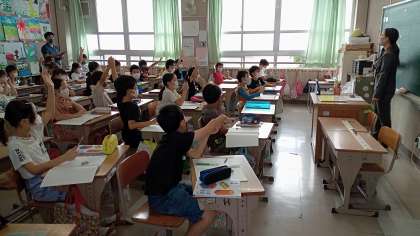 ●校内授業公開(4年生算数) 公開日 2021/10/11 更新日 2021/10/11 トピックス 4年生担任の竹内先生が算数の授業を校内公開しました。数量関係を( )を使った式で表し、計算の順序やきまりについて理解しました。