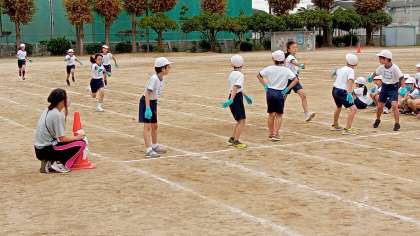 順に、リレー、台風の目、学年演技の様子です。