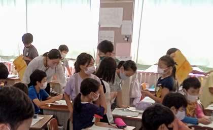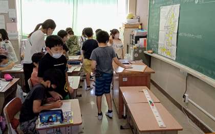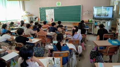 4年生担当の竹内先生が、社会の研究授業を行いました。江戸時代の大和川の付け替えについて、当時の村人の立場から、賛否さまざまな意見を発表しあいました。