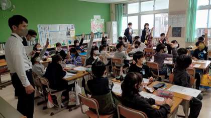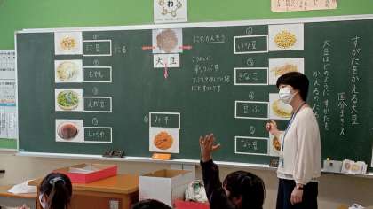 栄養教諭の池田先生が研究授業を行いました。他小学校の若手教員が来校、参観し、今後の実践にむけて学びました。