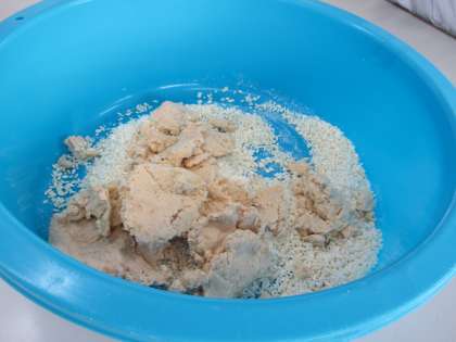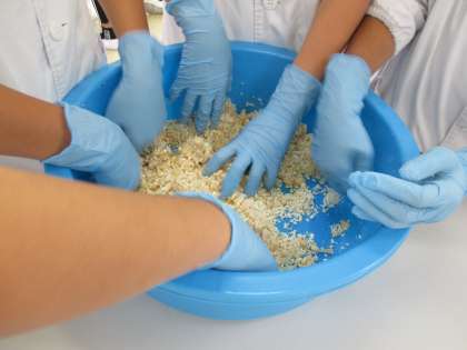 工程その2 大豆と米糀・塩を合わせて良くこねる