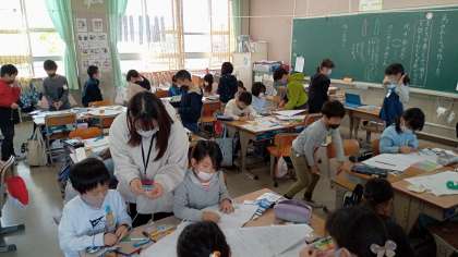 順に、2年生(生活科)、3年生(書写)、あおぞら学級です。あおぞら学級では、みんなで秋のカレンダーを作りました。