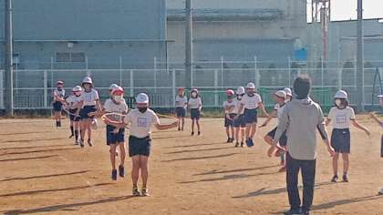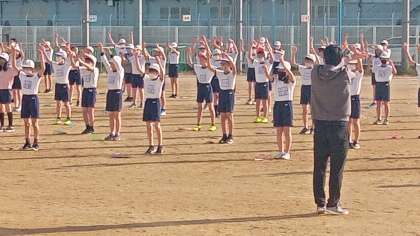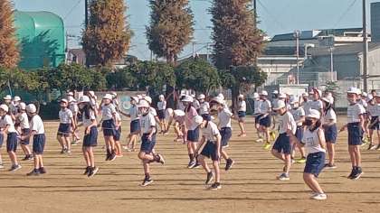 ●5年生 なわとび朝礼 公開日 2021/11/05 更新日 2021/11/05 学校生活 恒例のなわとび朝礼が始まりました。今日は5年生です。ラジオ体操でウォーミングアップの後、音楽に合わせて前跳び、後ろ跳び、あや跳び、二重跳びなどなど、いろんな技に挑戦です。
