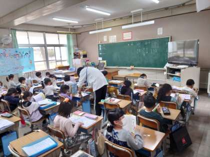 漢字の学習をしていました。先生に○つけをしてもらっています。ドキドキしながら,まっていました。