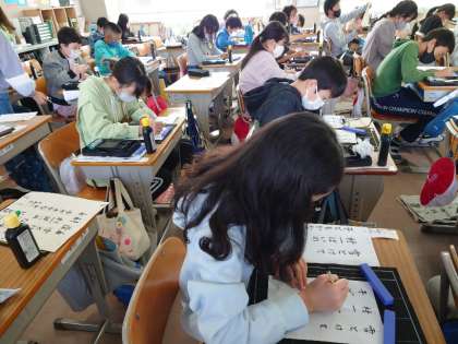 小筆の作品を仕上げていました。毛先をしっかり整え,良い姿勢で,とても集中して書けていました。