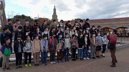 予定より少し遅れて到着しました。クラス写真を撮って入場します。