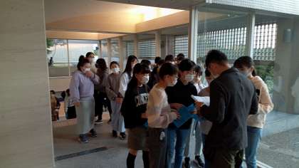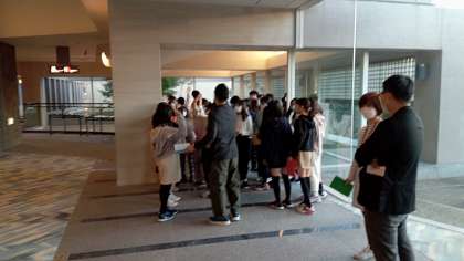 朝食会場に続々とやってきます。部屋ごとに健康チェックを受けて中に入ります。