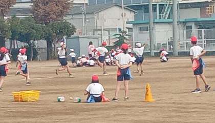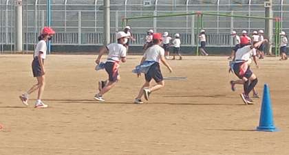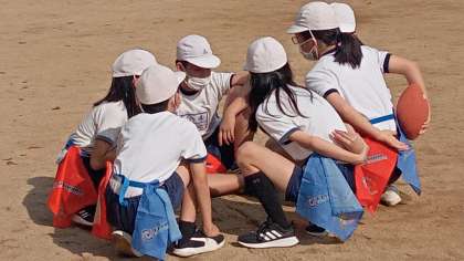 フラッグ・フットボールです。チームで作戦を立てて対戦します。