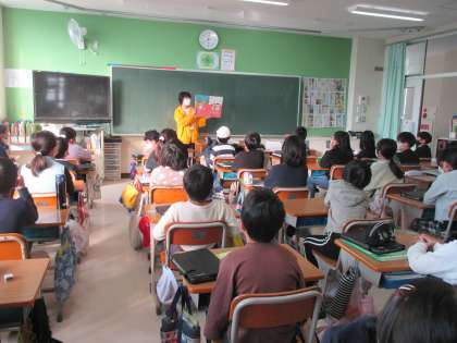 保健の学習と関連して,栄養教諭による食育の読み聞かせを行いました。
