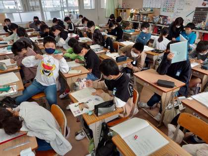 比例や反比例の学習の発展で、今日は難問の式化に挑戦しました。 よく考えていました。