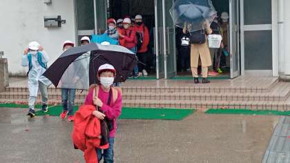 あいにくの雨の天気となりましたが、大阪城に向かいました。子どもたちは元気です。