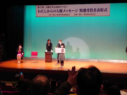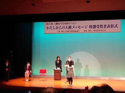 12月4日(土)に「人権を守る市民のつどい」がありました。その中で,「第42回わたしからの人権メッセージ」の表彰がありました。本校の5年生の児童が「今,私にできるSDGs」というテーマで,自分の考えをしっかりと書き,表彰されました。
