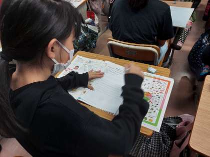 そのあと、チャレンジカードに自分が作りたい料理の手順を書きました。