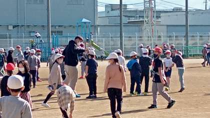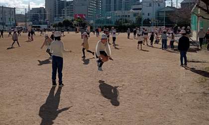 良い天気で運動場は大賑わいでした。子どもたちは元気です。