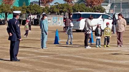 ●1年生 交通安全教室 公開日 2021/12/14 更新日 2021/12/14 トピックス 1年生は運動場で交通安全教室を実施しました。北堺警察のお巡りさんから街の歩き方をしっかりと教わりました。ご協力いただいた保護者の皆さま、寒い中どうもありがとうございました。