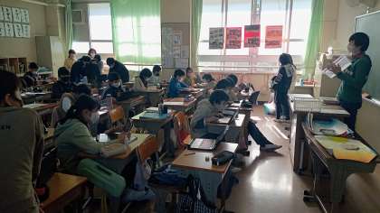 順に、4年生、5年生、6年生の授業風景です。