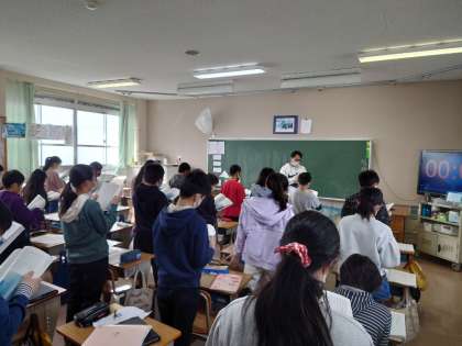 授業のはじめに微音読をしています。しっかりと読み込んで授業に取り組んでいます。読む速度がとても速く,さすが6年生です。